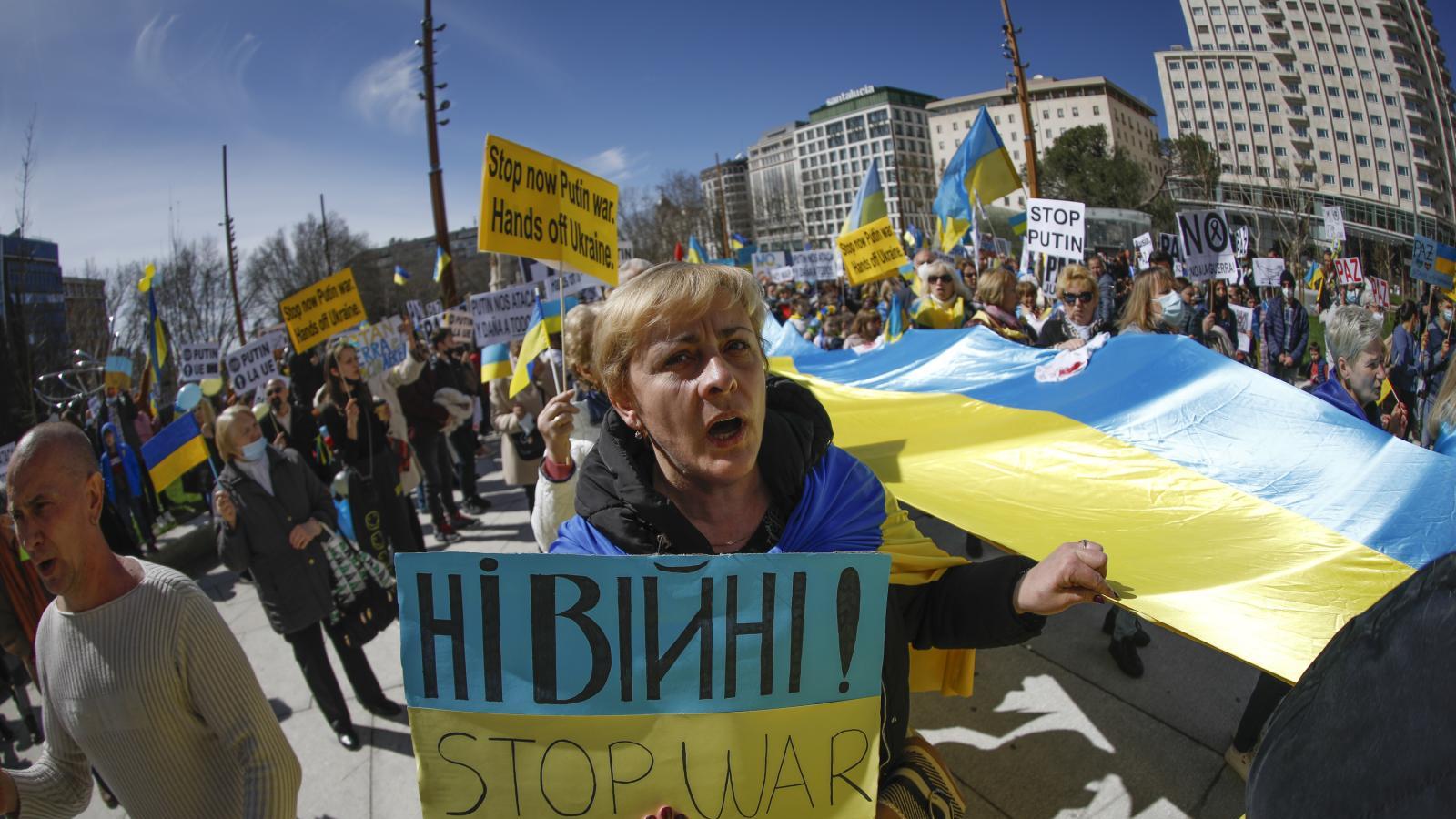 Más de 4.000 personas piden en Madrid el cierre del espacio aéreo en Ucrania y el fin de la guerra