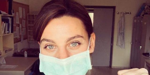 Clara Alvarado se quita la careta de Dalí para ponerse el traje de enfermera