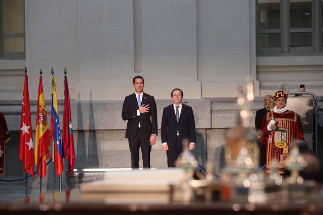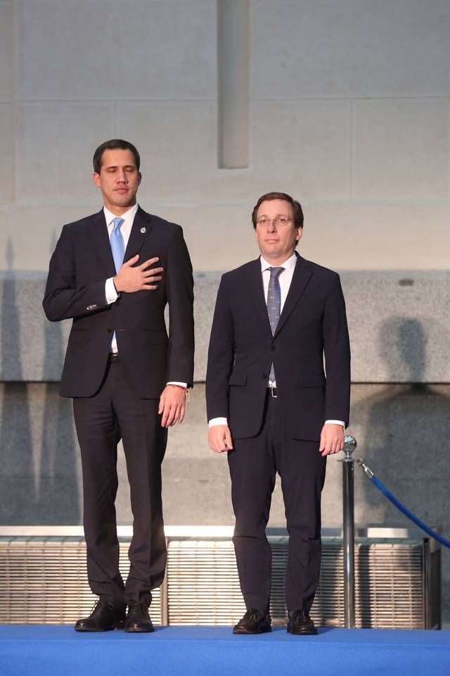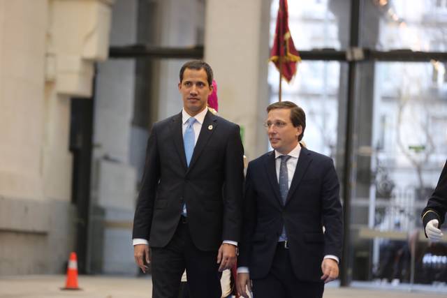 El alcalde de Madrid, José Luis Martínez-Almeida, ha hecho entrega este sábado de la Llave de Oro de la ciudad al presidente de la Asamblea Nacional de Venezuela, reconocido por 60 países como presidente interino, Juan Guaidó, para reconocerle así "mandatario legítimo de un país soberano".